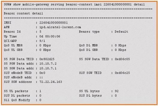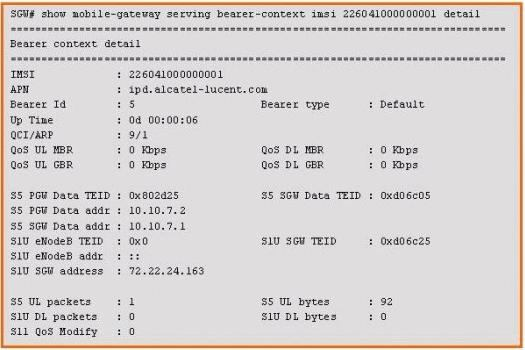 6. Show mobile-gateway pdn bearer-context imsi <imsi-number> detail