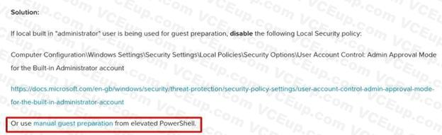 The administrator is using the local built-in administrator account for the Windows VM Admin approval mode must remain enabled.