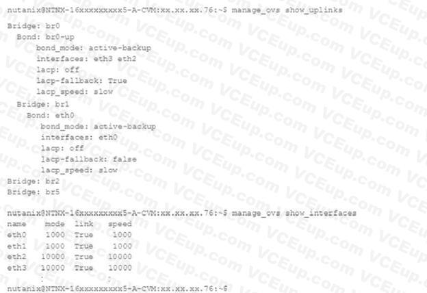 An administrator inherits a new Nutanix environment and logs in to a CVM to check the network configuration. The configuration is as follows: