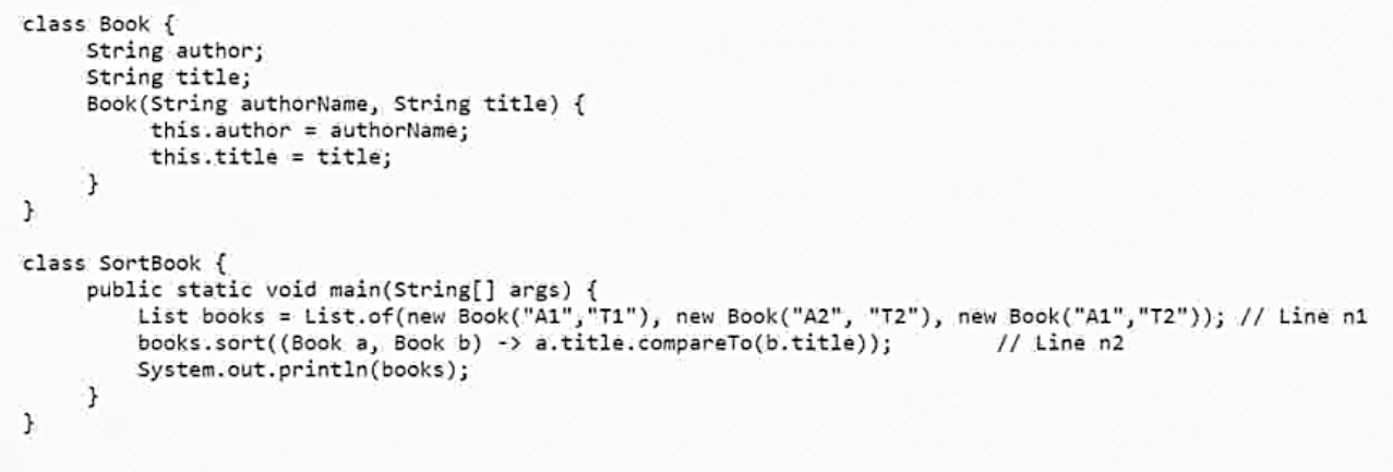 1. At Line n2, replace books.sort() with books.stream().sort().