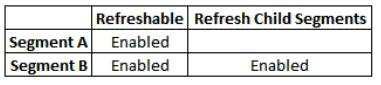 Which configuration is needed to make sure that Segment B is automatically refreshed when Segment A is refreshed?