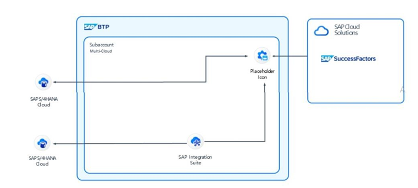 • The event will be caught by one of SAP's event solutions and it will trigger (via webhook) either SAP Integration Suite or SAP S/4HANA Cloud as needed.