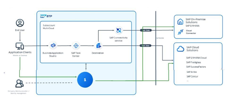 As a solution architect, you are asked for your opinion on an optimal integration. You are told that the data resides in two places, SAP S/4HANA (on- premise) and third party APIs. You are also told the following requirements: