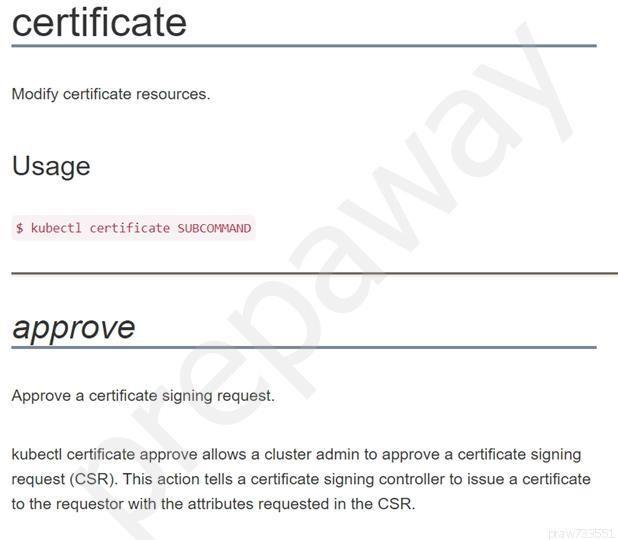 Reference: https://kubernetes.io/docs/reference/generated/kubectl/kubectl-commands#certificate