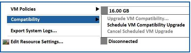 After upgrading the vSphere infrastructure and VMware Tools to version 6.5, the “Upgrade VM Compatibility” option is grayed out in the vSphere Web Client.