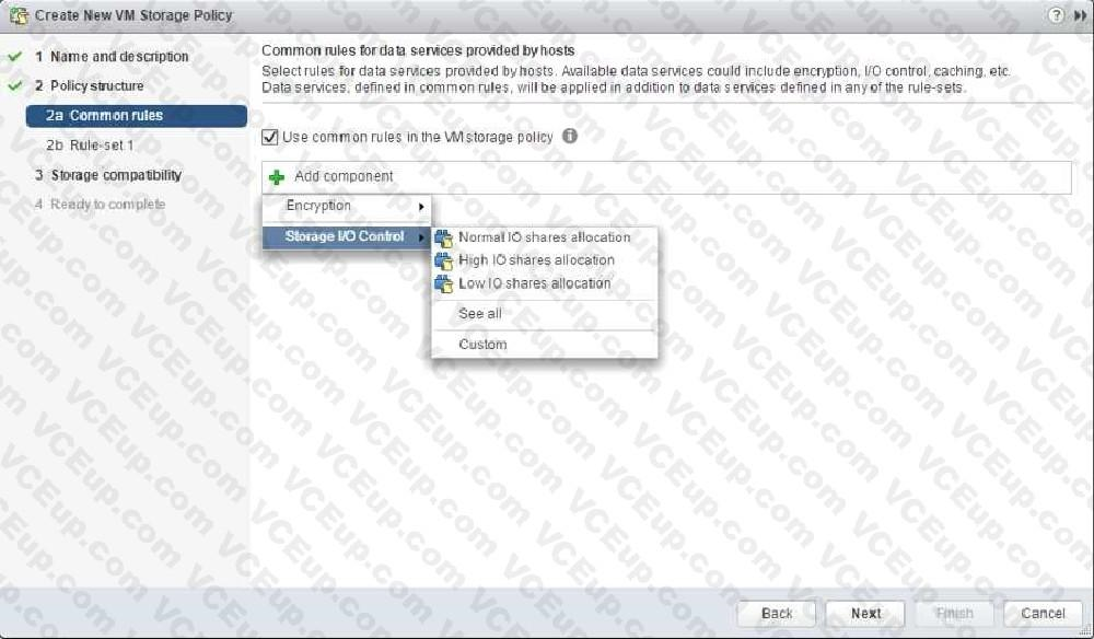 The IT Team recently implemented a Unified Communication Service to provide conferencing for the organization. The UCS Application server is running from a virtual machine named VM1-UCS. Due to the nature of the UCS. the traffic for VM1-UCS has a higher Class of Service (CoS) demand.
