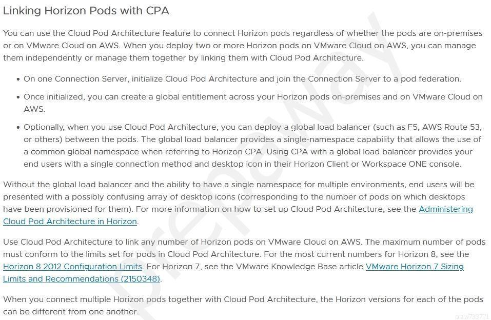 6. Connect the two VMware Horizon pods together using a Horizon Cloud Pod Architecture (CPA).
